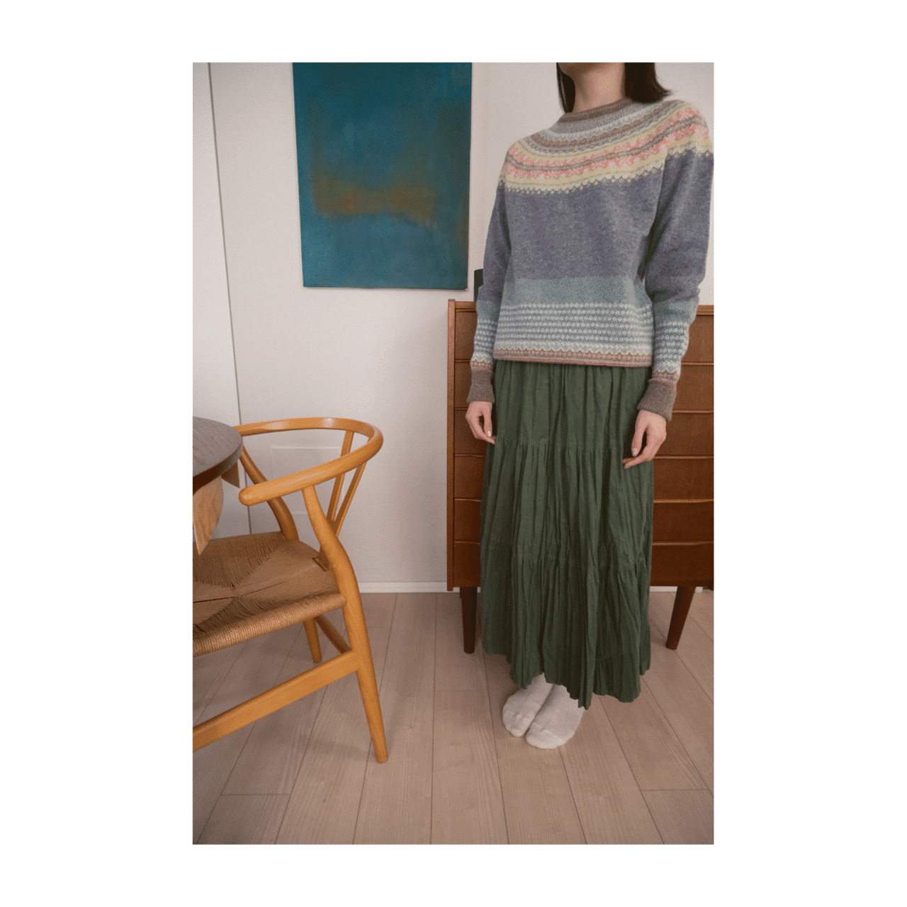 スコットランドの名門ニットと、USA製コーデュロイ・ティアードで、日常を凛と。