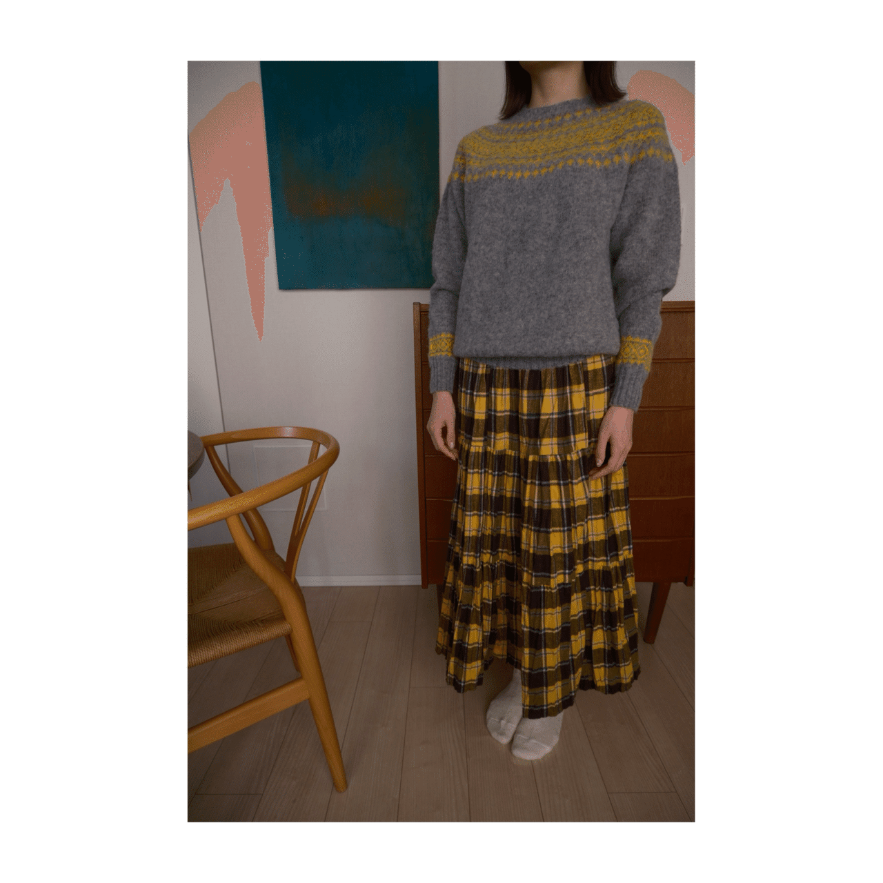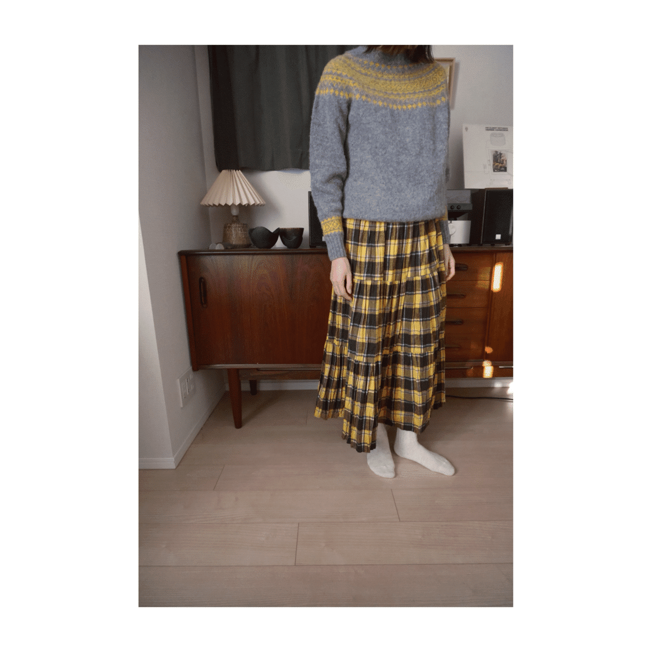 スコットランドの名門ニットと、USA製ティアードスカートで、日常を凛と。