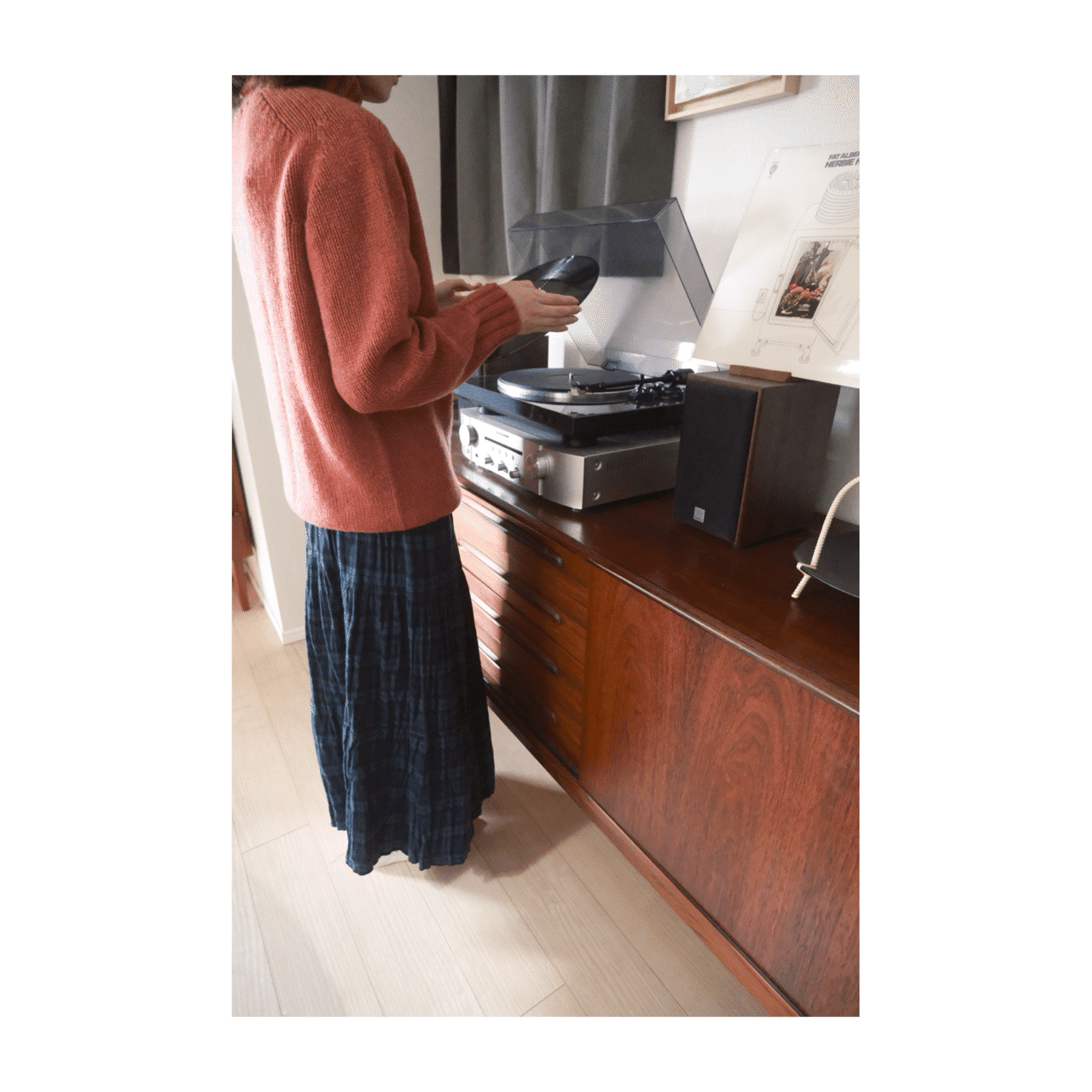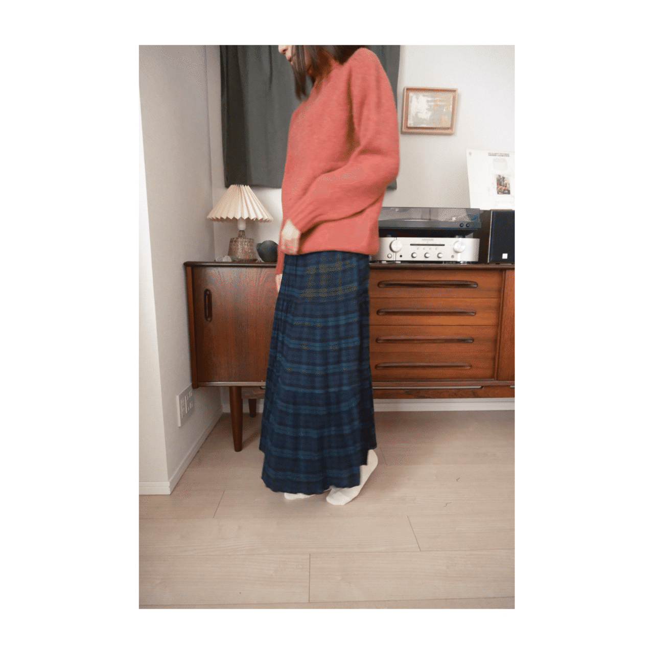 スコットランドの名門ニットと、USA製ティアードスカートで、日常を凛と。