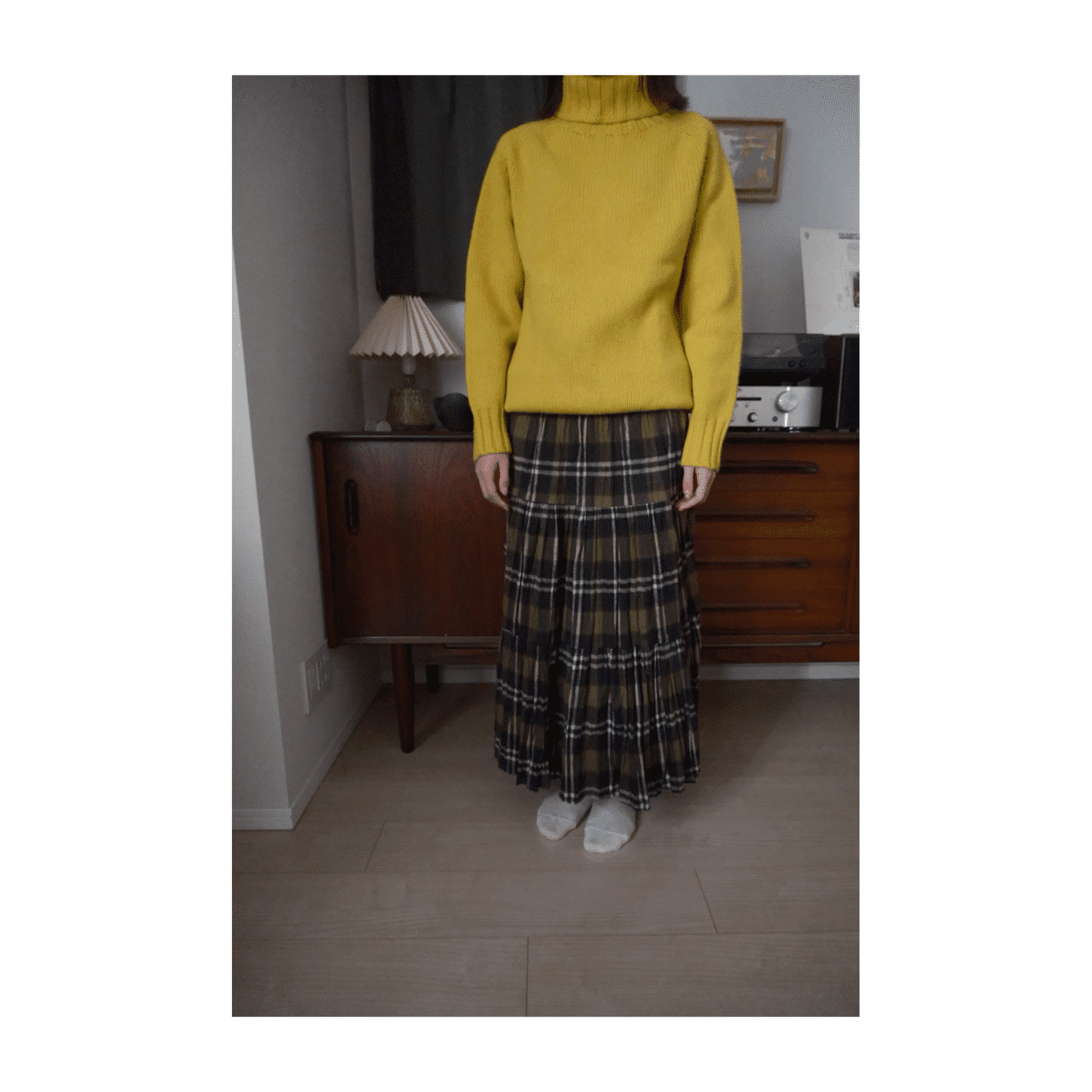 スコットランドの名門ニットと、USA製ティアードスカートで、日常を凛と。