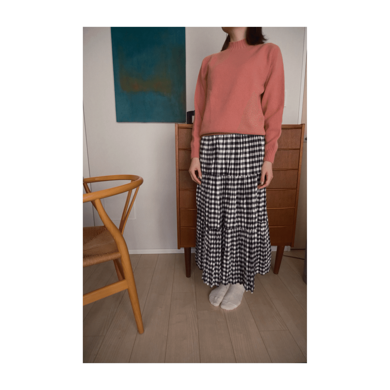 スコットランドの名門ニットと、USA製ティアードスカートで、日常を凛と。