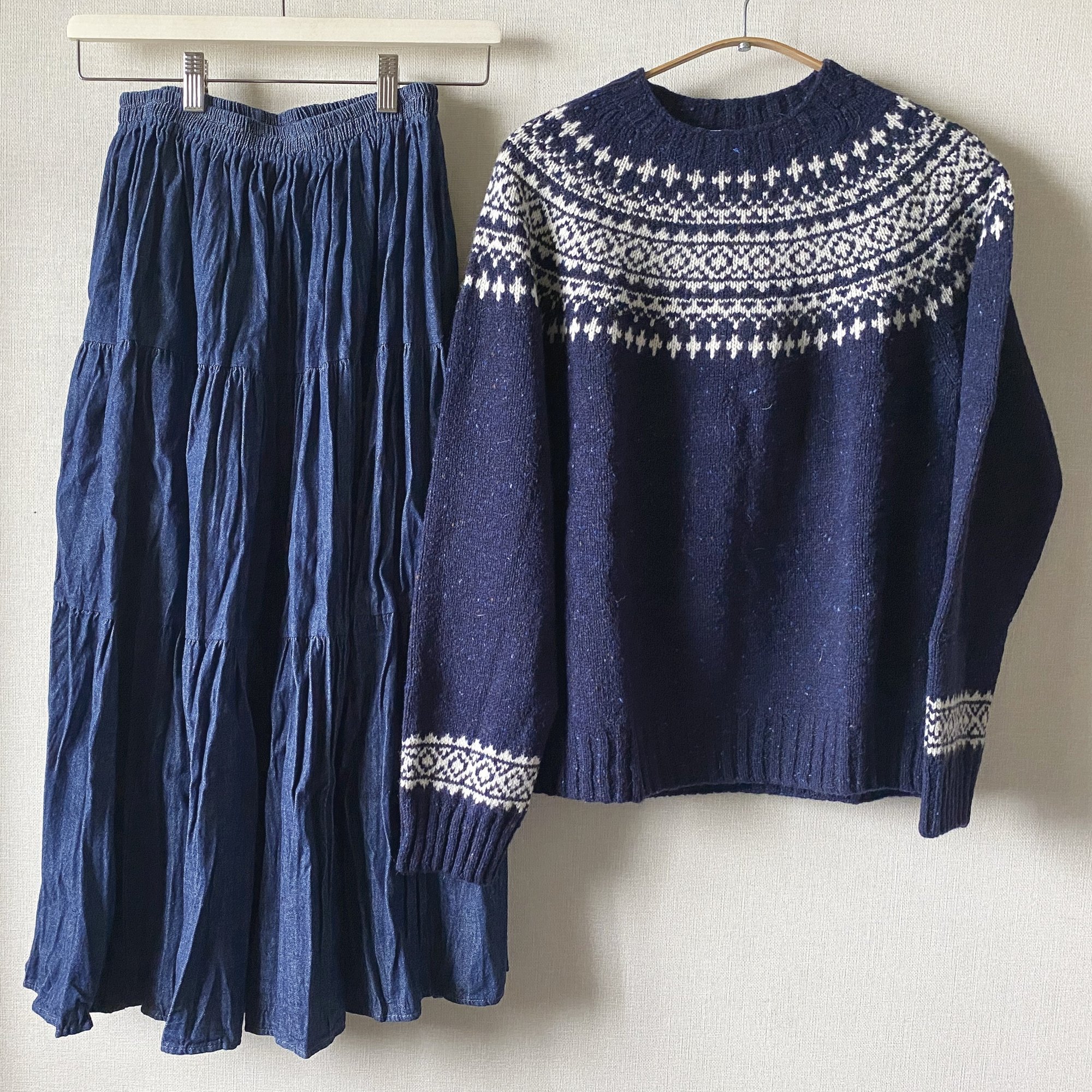 合わせたのは、Harley of Scotlandのネップジャカードクルーネックセーター(jura/vanille・size 38)。