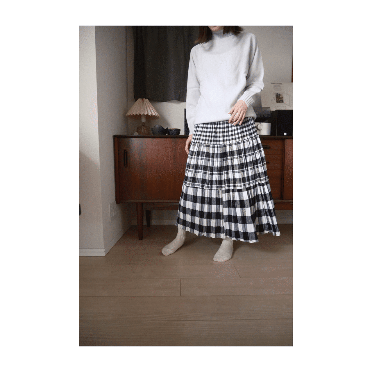 三段ティアードと細かなギャザーが生む自然なフレアで、歩くたび軽やかに揺れます。