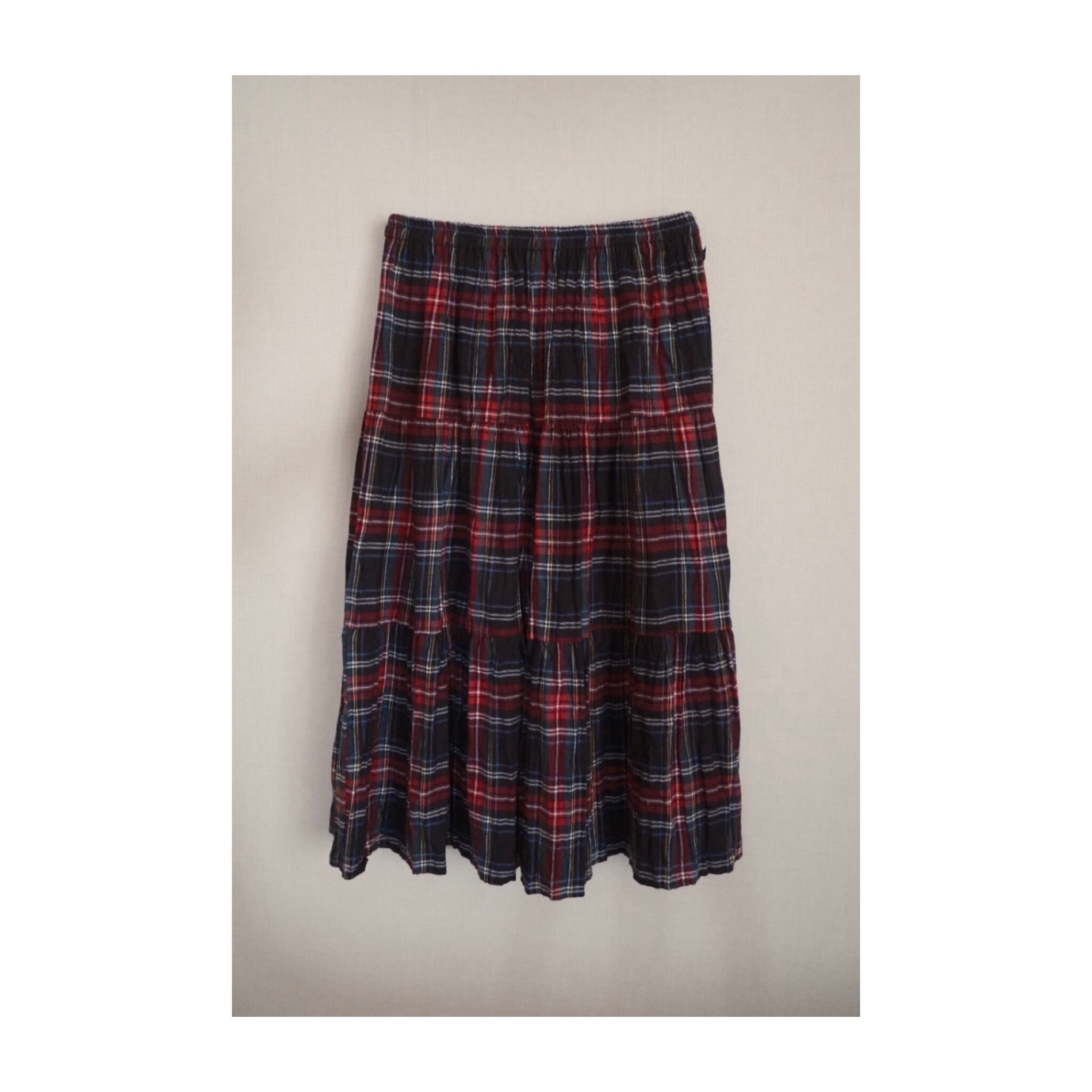 -ウエストゴム/三段切り替えのティアード/ブラックウォッチチェック。