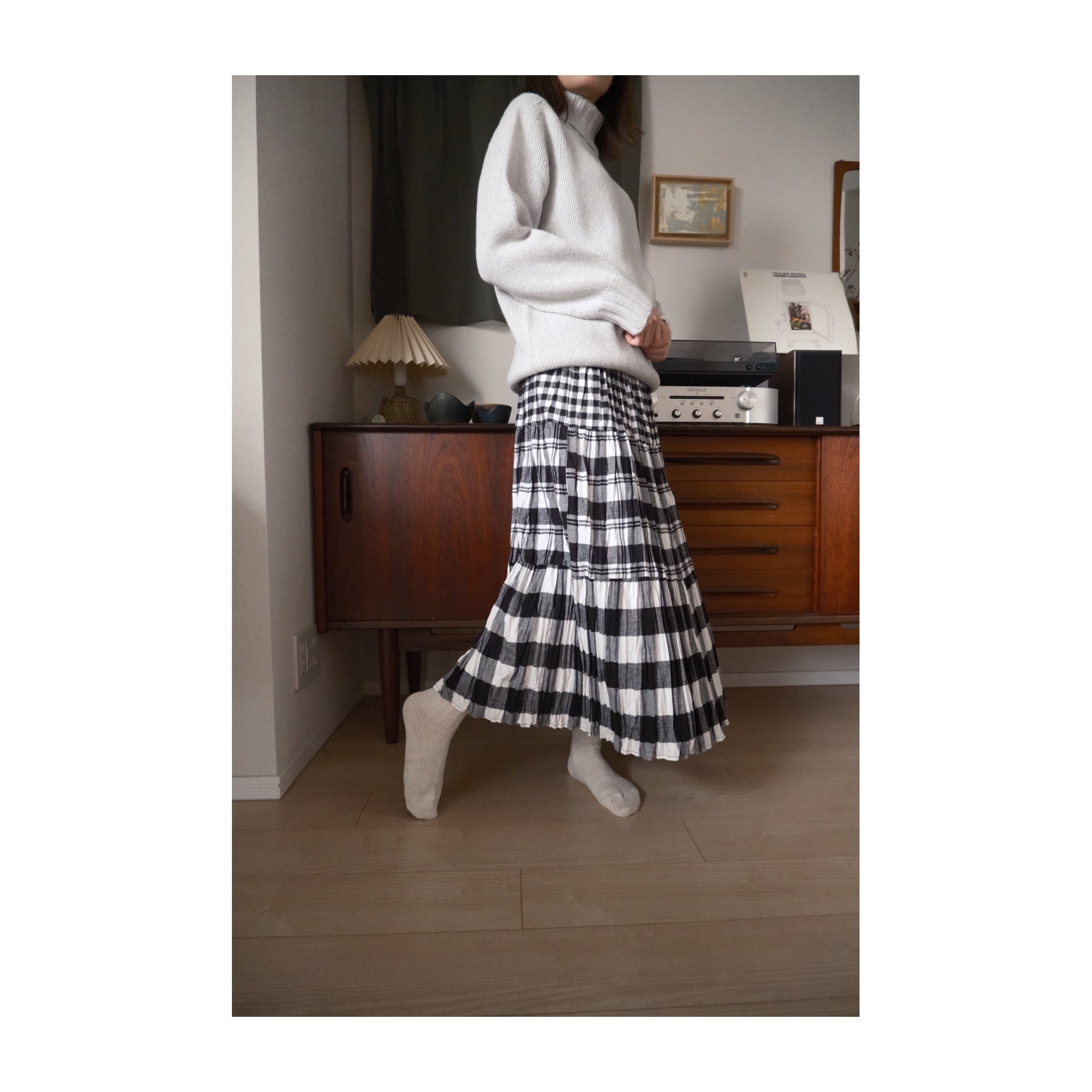 -モデル:SP9948 flannel check “tiered skirt flannel check mix white/black”