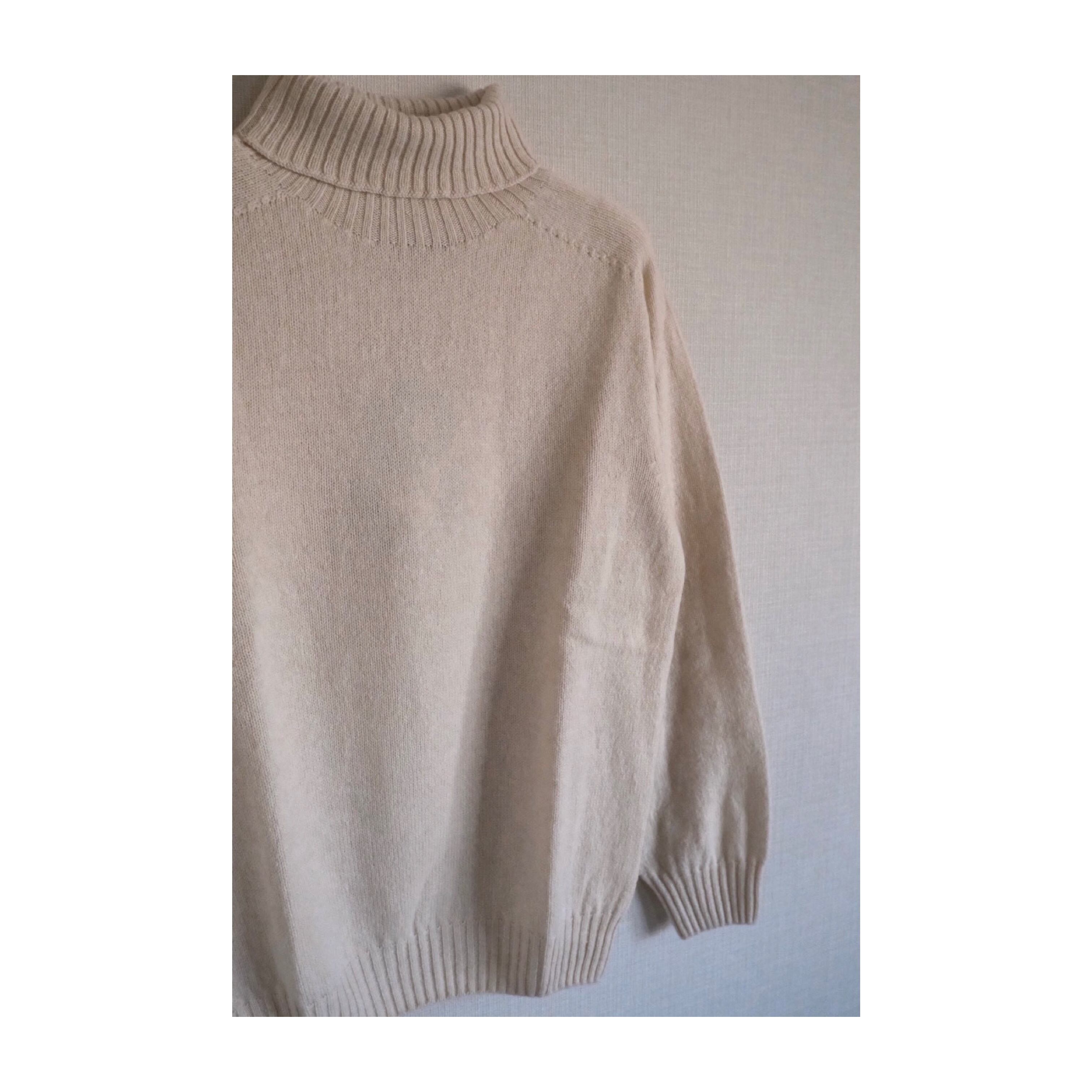 -モデル:2プライ ハイゲージ タートルネック セーター “Almond”
